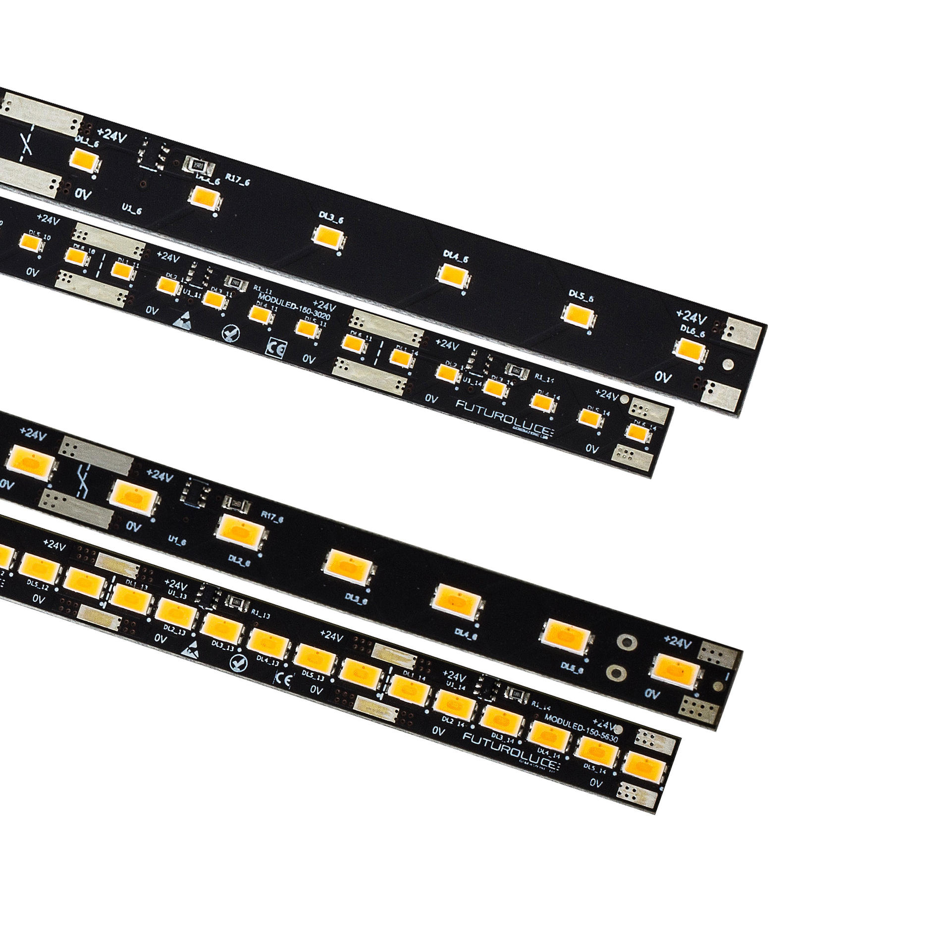 Circuito in vetronite doppia faccia. Serigrafia nera anti riflesso. LED ad elevata efficienza. Regolatore di corrente a bordo. Adesivizzato sul retro con nastro termo conduttivo. Dimmerabile con dimmer esterno. Grado di protezione IP20: protezione contro corpi solidi di dimensioni superiori a 12mm e non protetto dai liquidi.